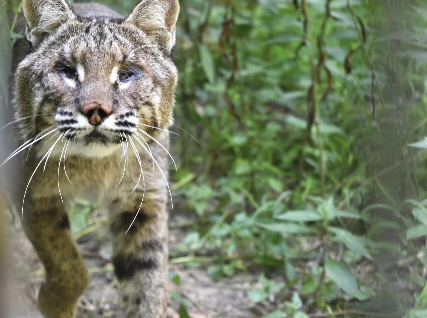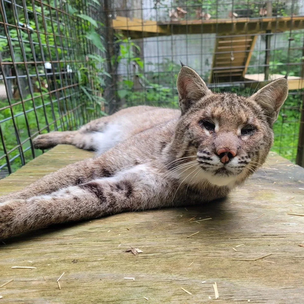 Addison arrived at the EFRC in 2025 after having a rocky start in life. He came to us from a nonprofit wildlife rehabilitation center in Kentucky. He was found on an army base as a kitten and it was suspected he had chemical exposure which took his eyesight.