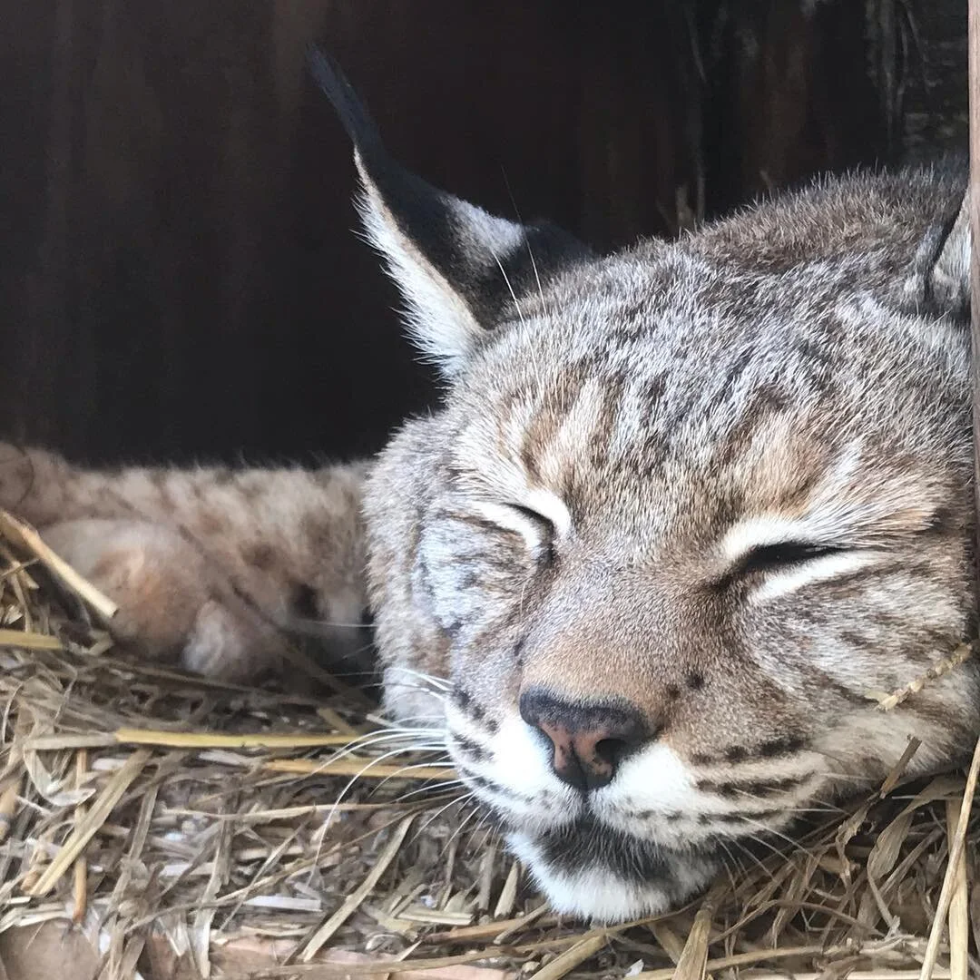 Rusty escaped from his owners and was later recaptured and transferred to the Rescue Center in 2011. The owners did not have the state or federal license to keep him. He definitely has a unique personality. Rusty prefers to nap the day away, but you definitely can tell when he is out and wants some attention. His purr will win you over…or he will try to pee on you!!