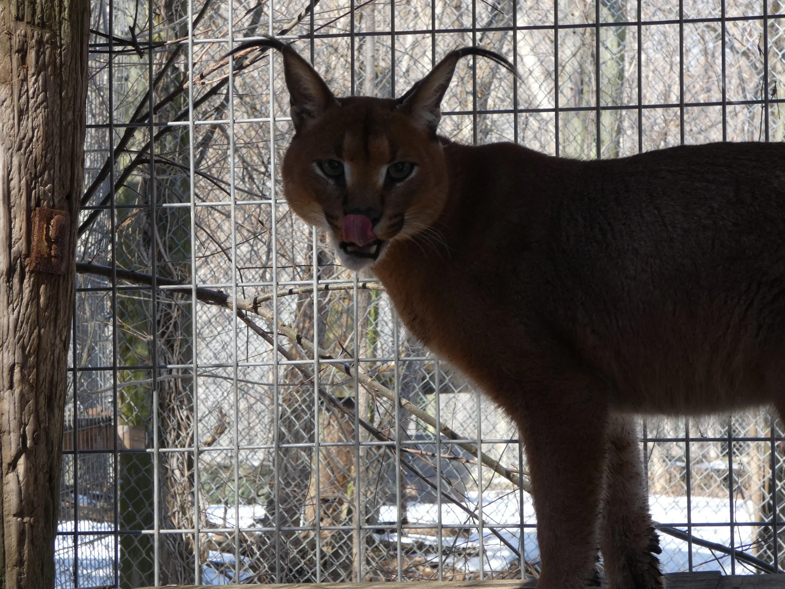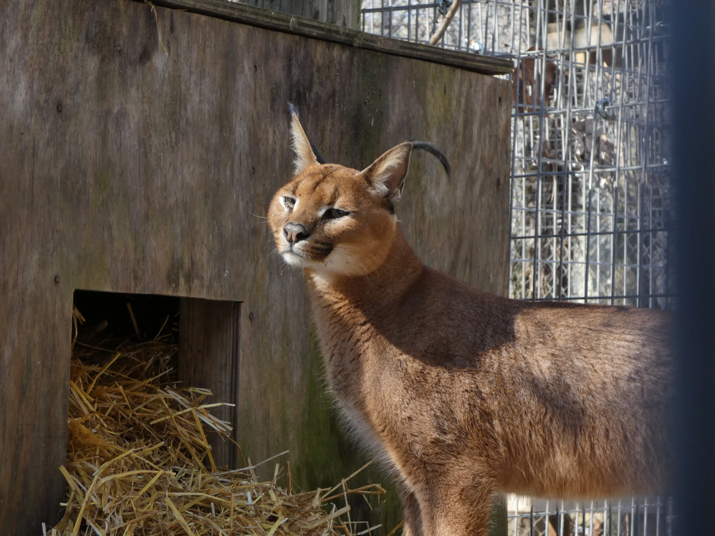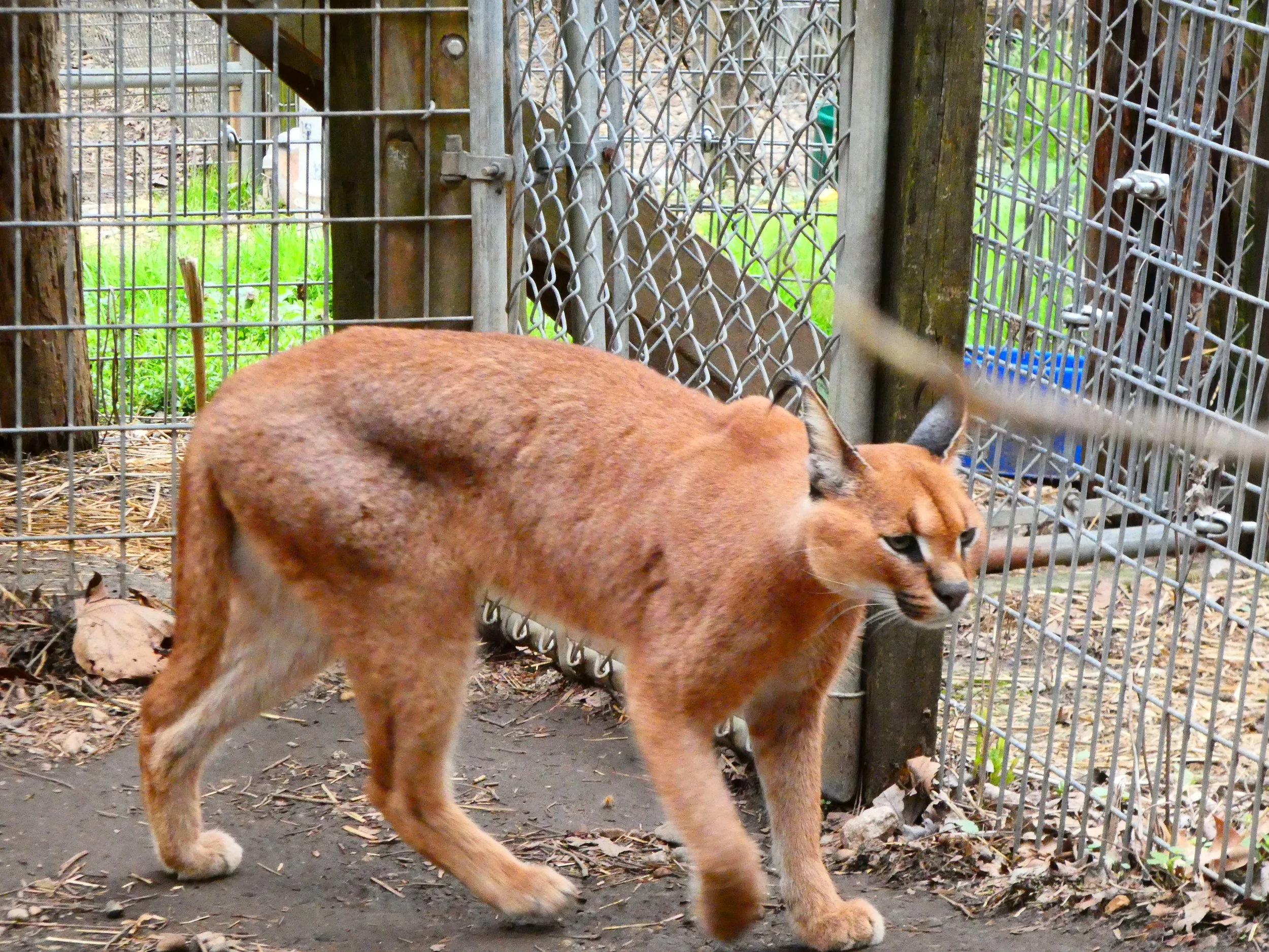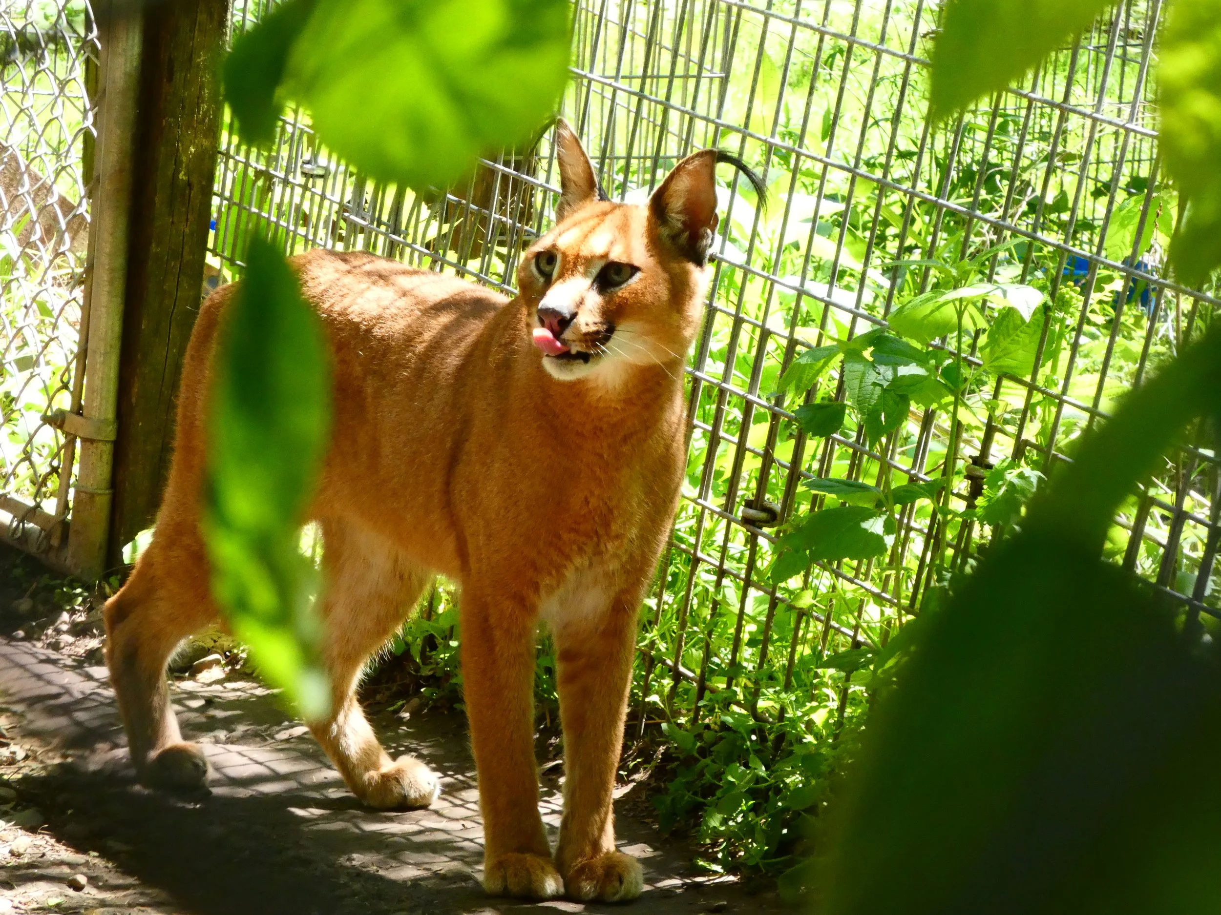 This handsome caracal boy is enjoying spending his days at the rescue center from up on his climbing towers. Wasabi lives with a just as big and feisty girl, Pebbles.