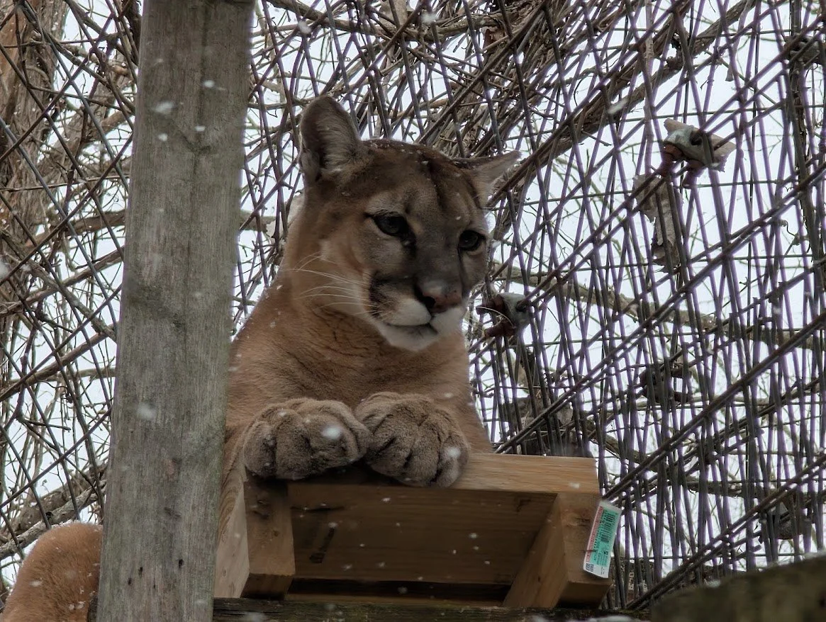 Zuni arrived in 2019 from a facility in California called Wildlife Waystation. Their Board of Directors had voted to surrender the facility’s California Department of Fish and Wildlife permit voluntarily and to close the facility. The facility had suffered through two wildfires and a flood. Overall, we rehomed 15 cats from Wildlife Waystation. Four pumas, six tigers, and five lions were brought to the rescue center over two trips coordinated by the foundation Tigers in America and a fellow rescue, In-Sync Exotics out of Wylie, TX. Zuni was born at Wildlife Waystation after her mother, a rescued cougar named Colli, gave birth to her there. Zuni lived with her sister Kaya, their brother Wichita, and their mom, Colli until one day Wichita decided it was not for him. The three girls still live together and can be seen sharing den boxes together. Zuni is the most active and the smallest of the girls. She is very feisty and not afraid to tell you she wants her food now!