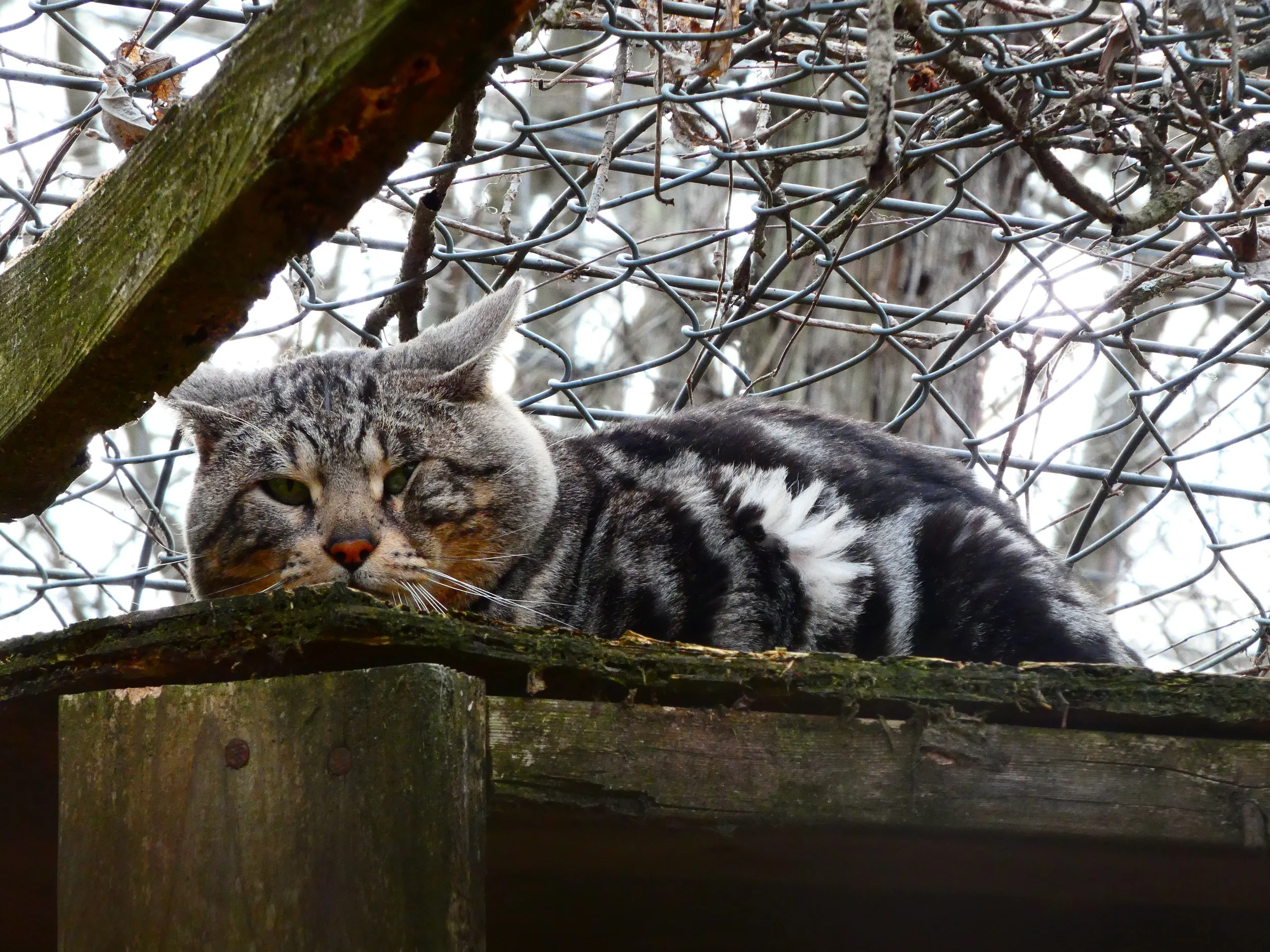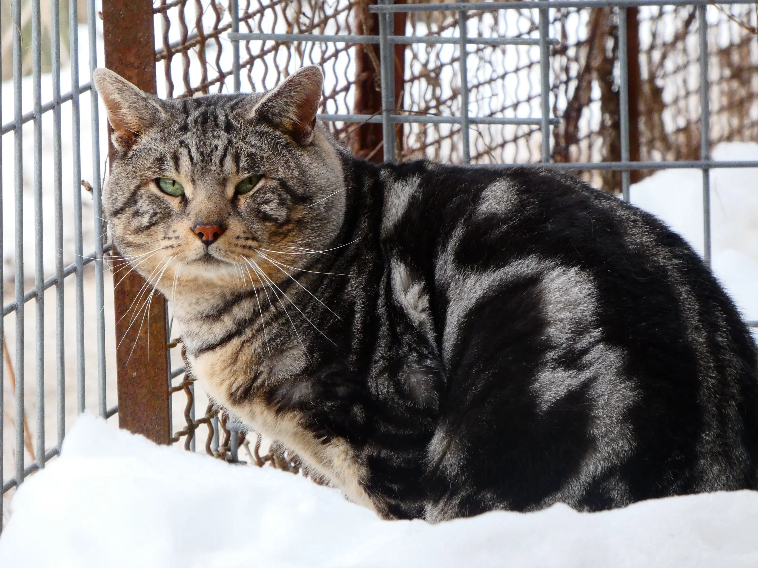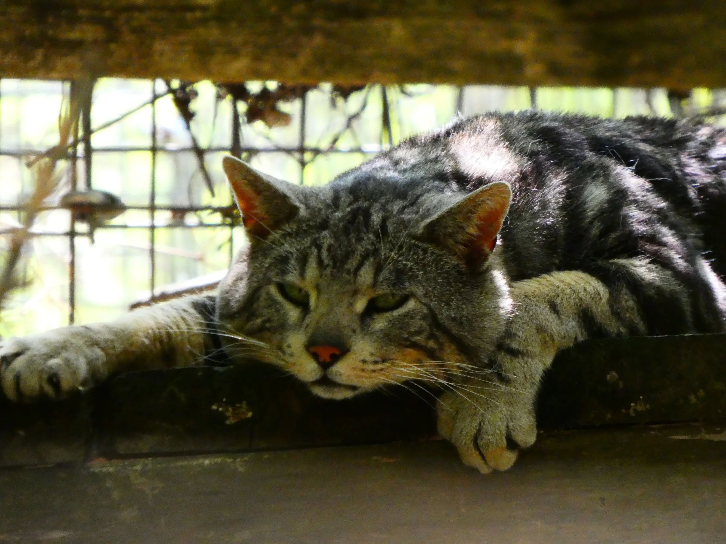 Kiba was surrendered to the EFRC by a private owner. He is a Savannah cat, which is a hybrid between an African serval and a domestic house cat. Savannah cats usually have spotted patterns like servals do, but Kiba is a “Marble” savannah, which gives him this more unique patterning. He lives on tour with two other savannah cats, Aayla and Veda.