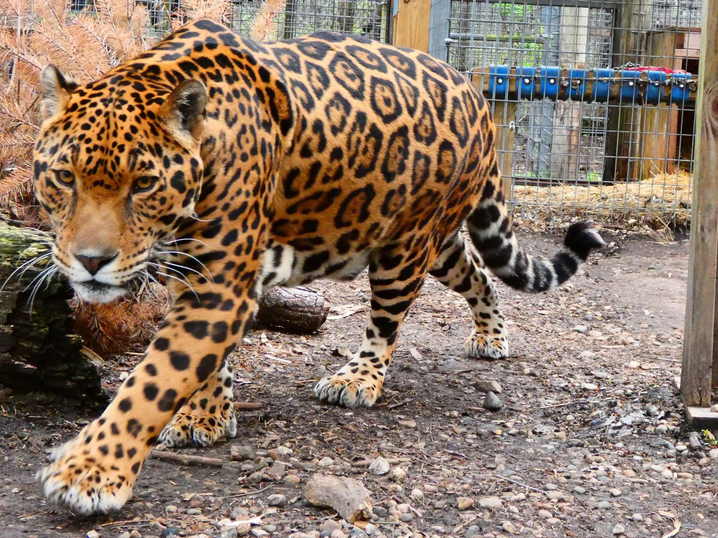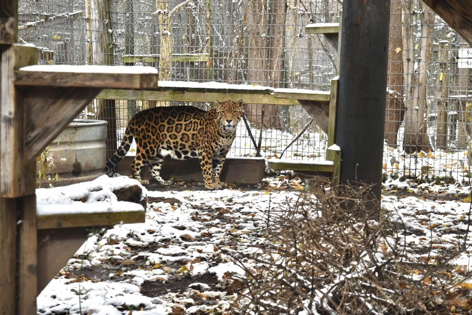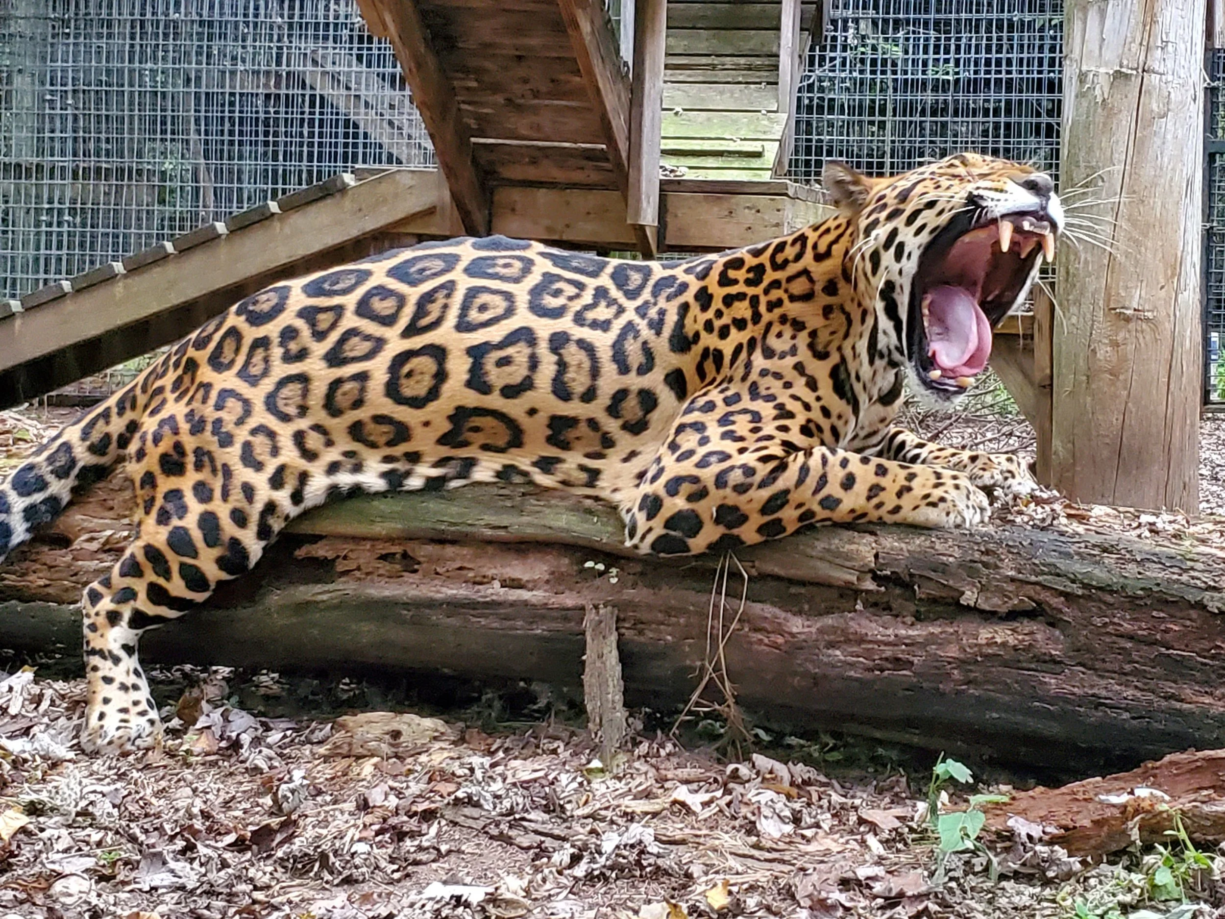 Potion arrived at the rescue center in the summer of 2025. He came from a private owner in California, along with a male lion named Perseus. He is the first jaguar to call the EFRC home in all of our years of operation. He can be seen before tours begin in an enclosure next to the merchandise booth. He enjoys resting on his many shelves and on his fire hose hammock.