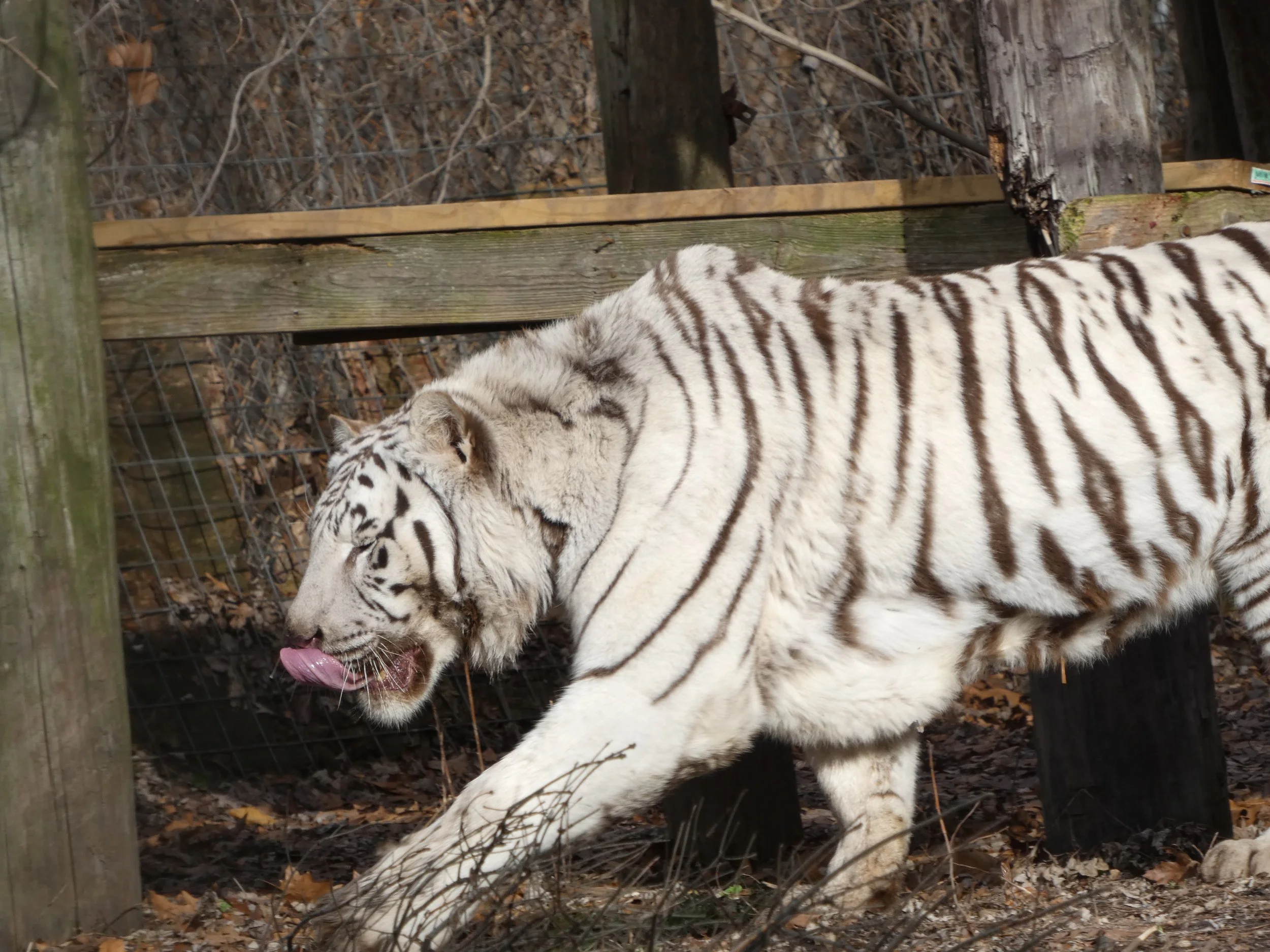 Beaux came from a Virginia Preacher in 2016. The man would take in unwanted tigers from the circus. The circus wouldn’t want these animals because of birth defects, undesirable coloring, temperament issues, and any other minor or major qualities. The Virginian preacher would use these rescued circus animals to teach Sunday school. The preacher's health was starting to fail and he didn’t want to continue using these large animals for his Sunday school, so he made the decision to rehome his three tigers. Beaux was only 14 months old when he arrived. He loves to lounge on his oversized tower and play with his large barrel. You can often hear him on tour, pushing his barrel across his enclosure. He arrived with Suzanna and Hope.