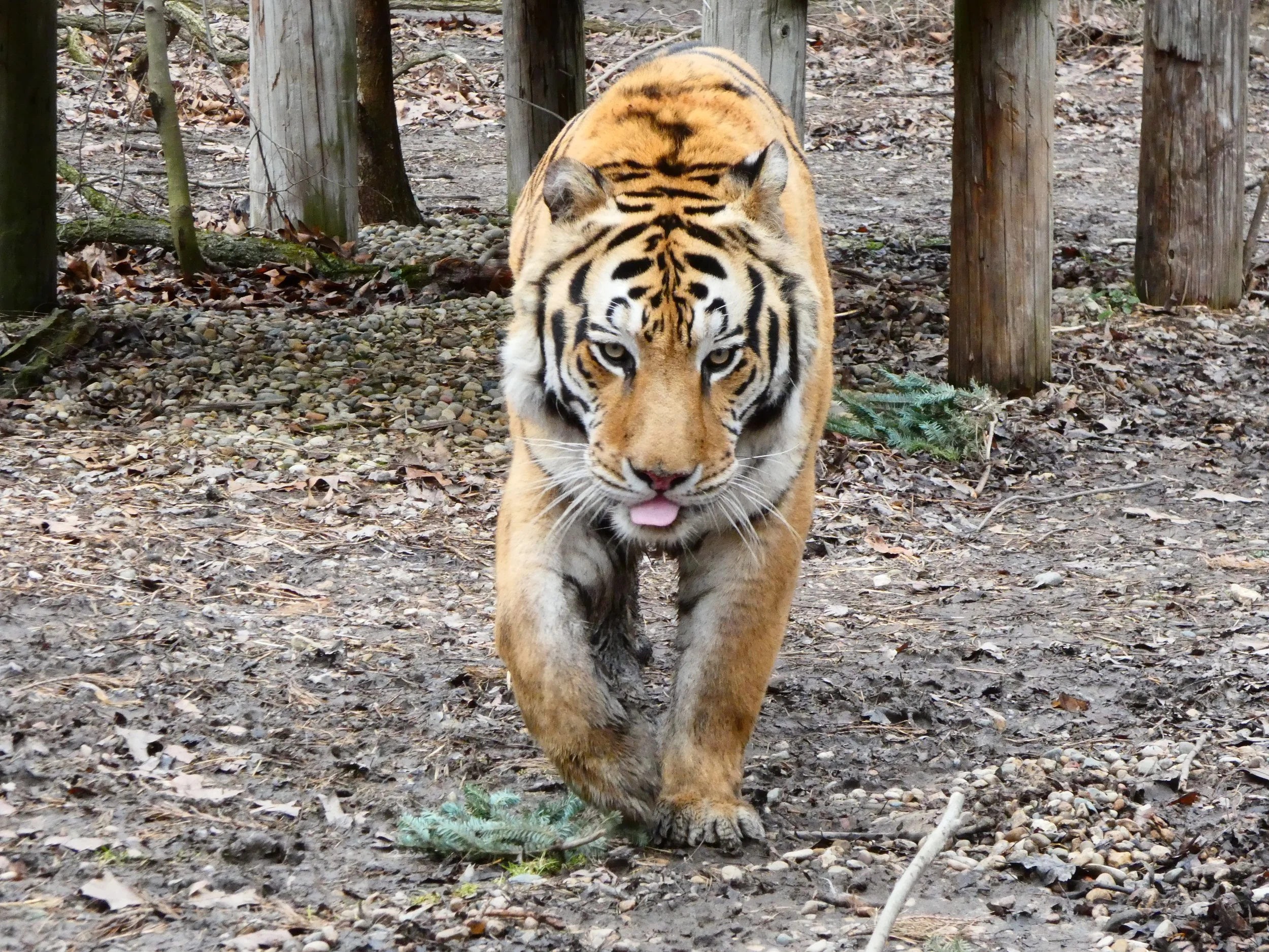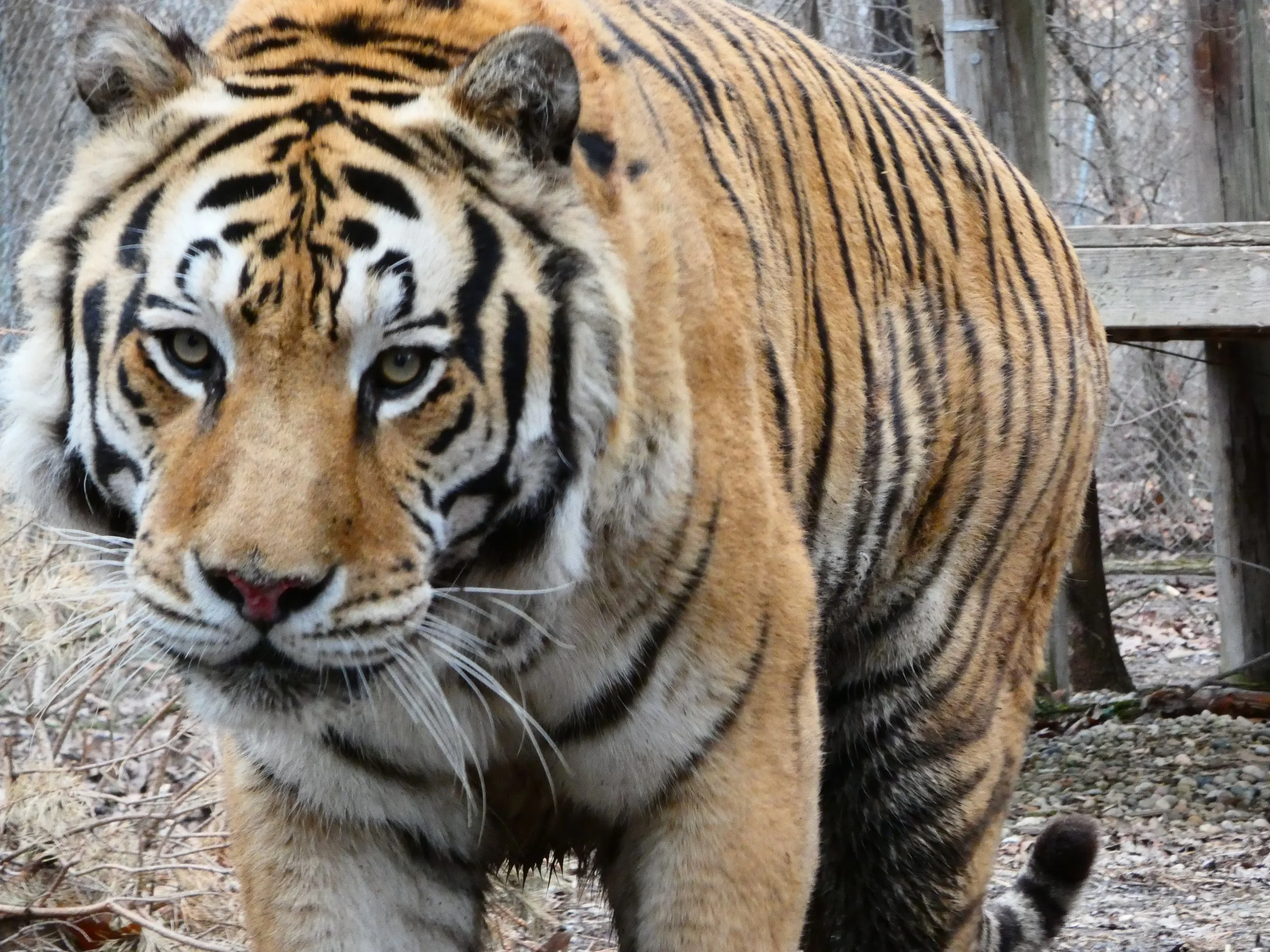 Hank came from place called Summer Wind Farms in Michigan that was closed down in 2017. Hank can be quite the character! He can be a social and playful boy one minute and the next he is crouched down ready to pounce and surprise any passerby. Summers and winters are good times to catch Hank swimming in his water. Often he will bring his big barrel swimming with him.