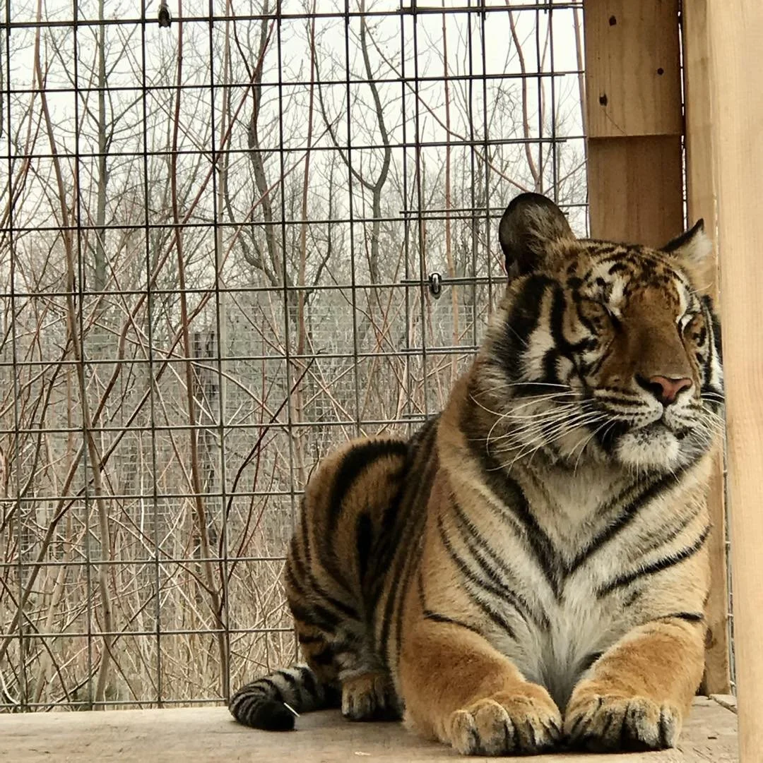 Kadira came with Krixis and Gaia from a private owner in Texas on Valentine’s Day of 2019. With the help of Tigers in America and our sister rescue, In-Sync Extotics in Texas, the cats came to be at the rescue center Kadira had inverted eyelids when rescued which was treated when she arrived at the EFRC by our vet staff and specialists from Indianapolis. Kadira is sweet but fierce, she can be very friendly to her keepers but doesn't let her big brother bully her. She has no problem letting her keepers know when she wants somethings, she is a very loud girl.