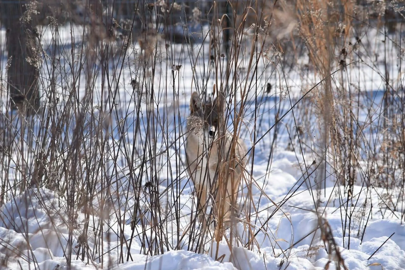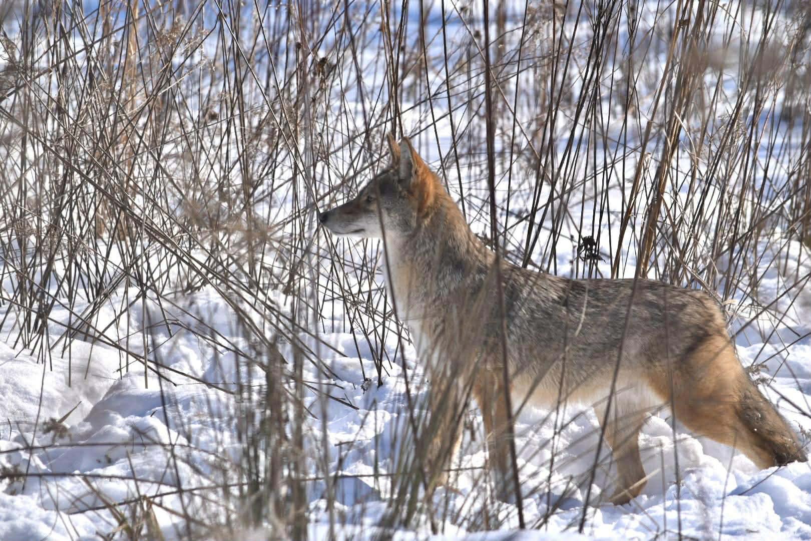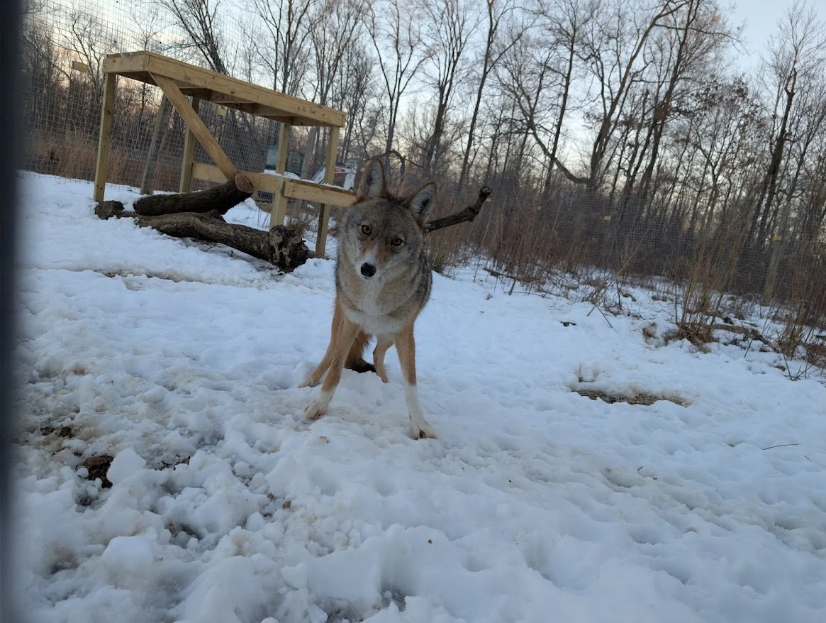 Socks came to the EFRC from a wildlife rehabilitator as a non-releasable coyote. He has been introduced to a female named Zira. They enjoy their spacious enclosure and the fresh air they get being outdoors.