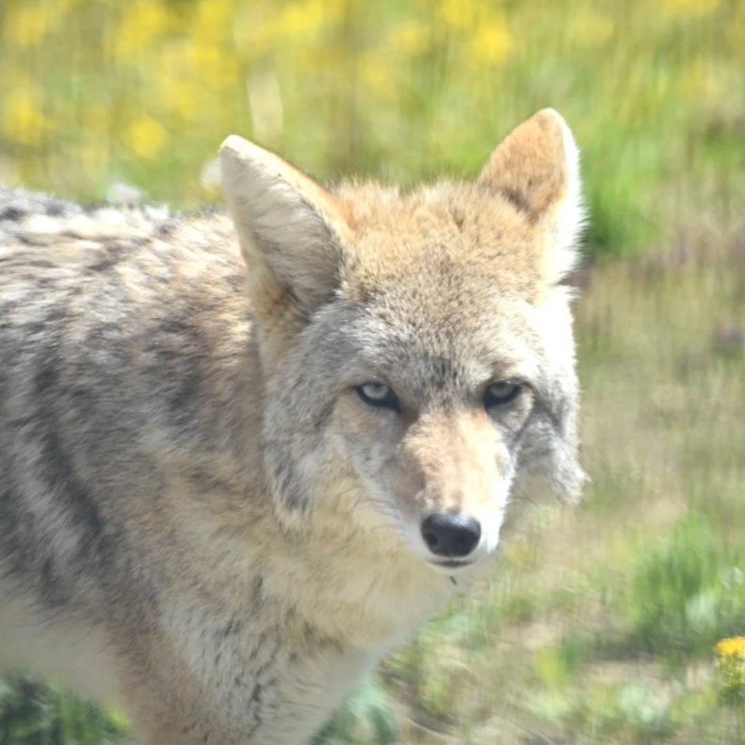 Suri came to us in February of 2024 from a private owner in Loogootee, Indiana. Her owner’s health was failing, and he chose to re-home her along with a bobcat and raccoons. She was born in 2016 and is the EFRC’s first coyote. She lives with Cruise, a male coyote off of the tour path.