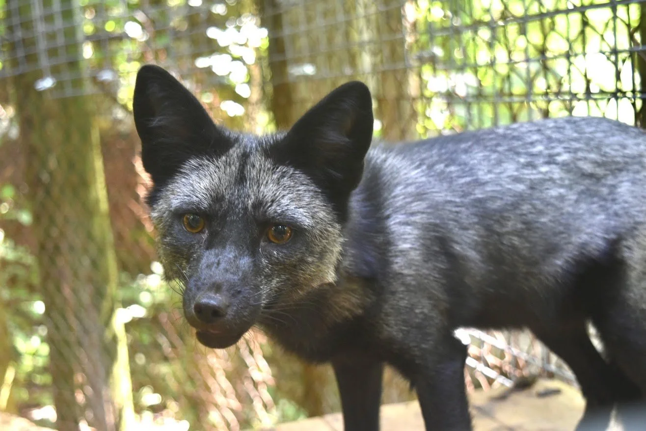 Flick was rescued from a fur and urine farm in Ashtabula, Ohio. More information on this rescue can be found here. She can be found on tour with three other red foxes from the same rescue: Fayro, Vlinder, and Steve.