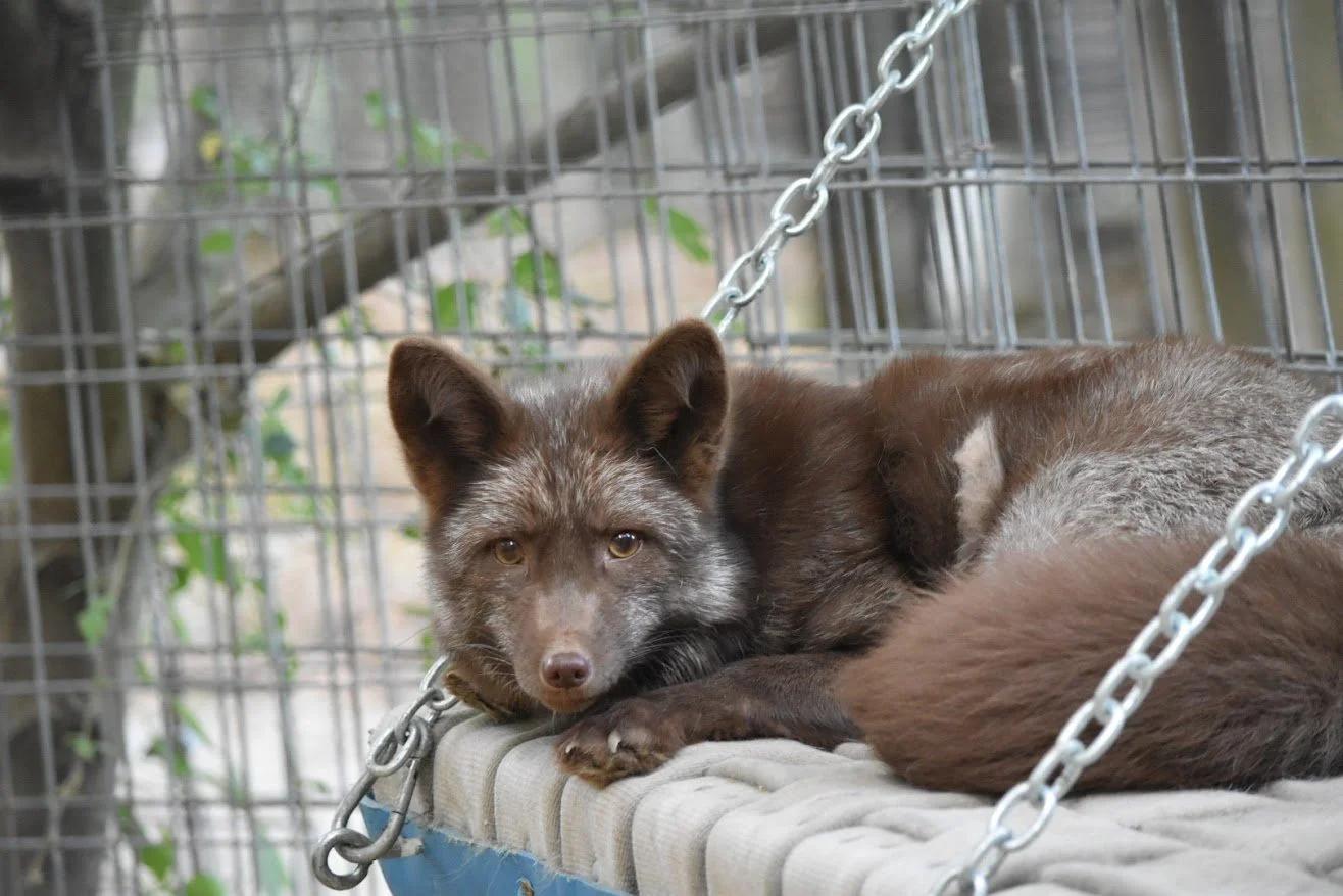 Groot came to the EFRC with 6 other red foxes. As life circumstances changed, their previous owner was unable to continue their care. All of the foxes from this situation are named after characters from “Guardians of the Galaxy.” He lives with four of them: Nebula, Drax, Gamora, and Rocket. He spends a lot of time snoozing in their topmost den box.