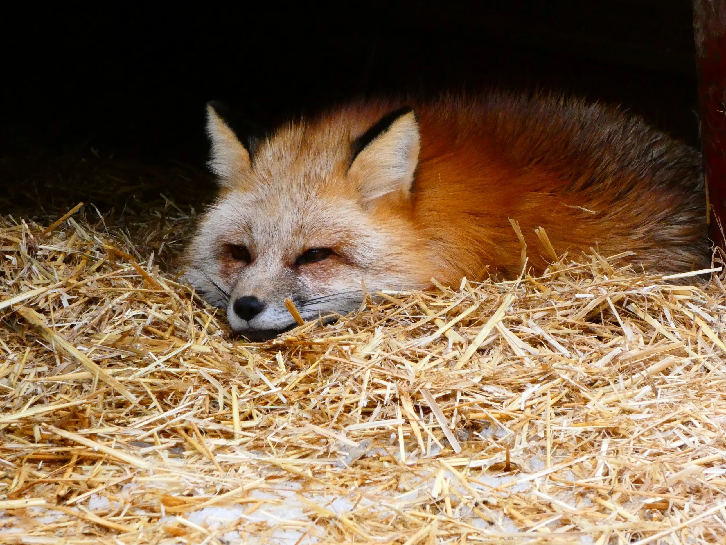 Hazel was rescued from a fur and urine farm in Ashtabula, Ohio in 2025. More information on this rescue can be found here. She can be found on tour with three other red foxes from the same rescue: Kristofferson, Ginger, and Agnes.