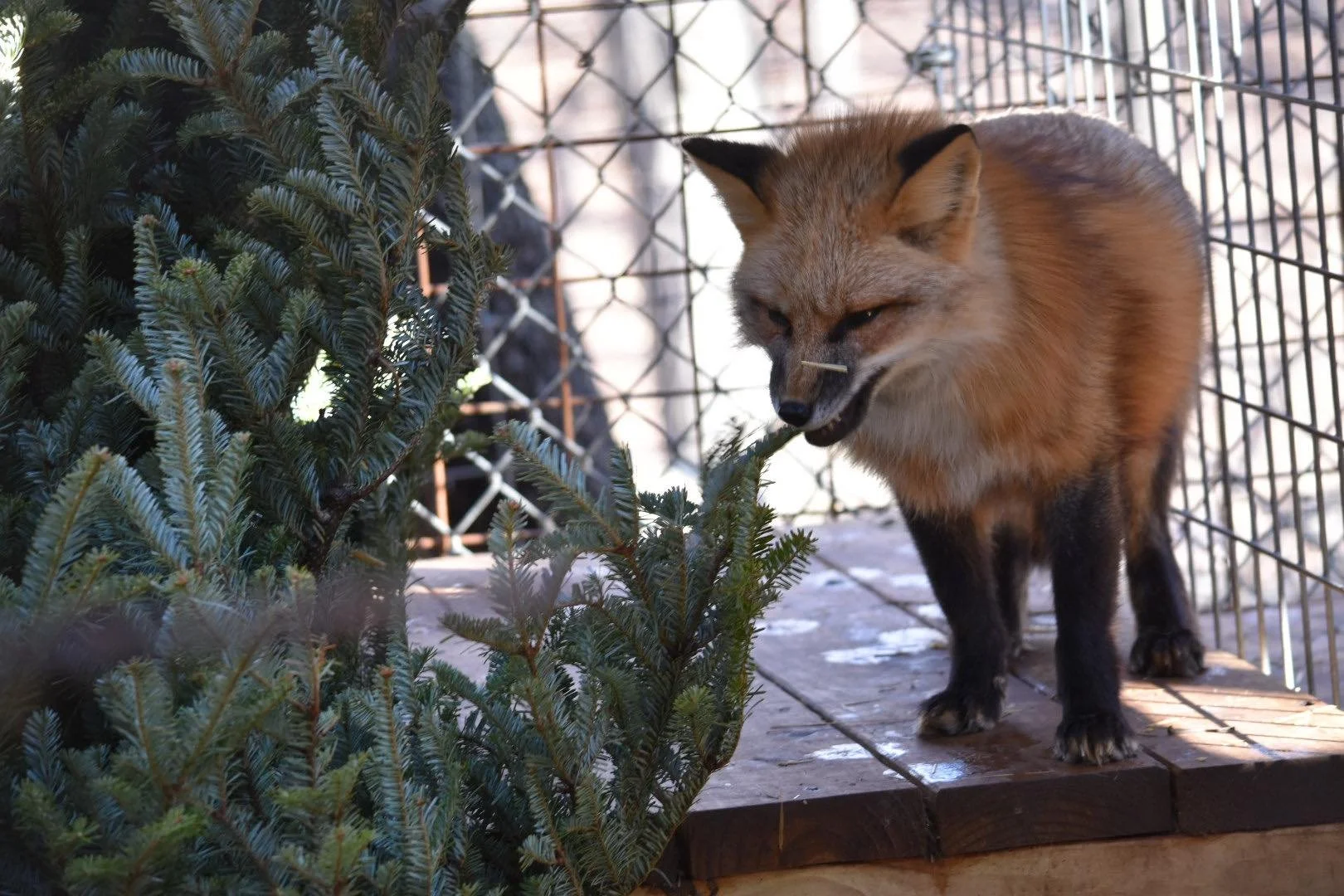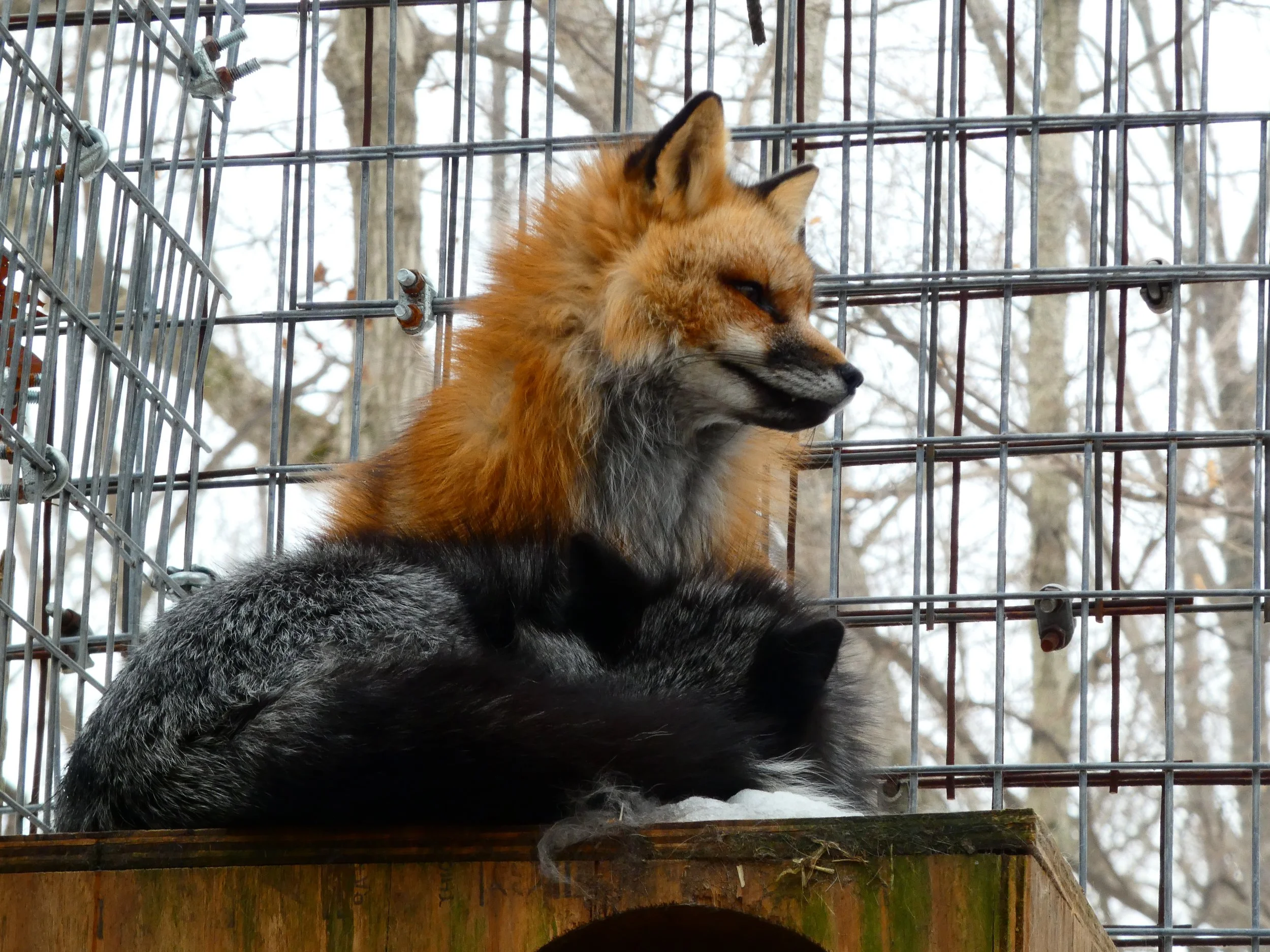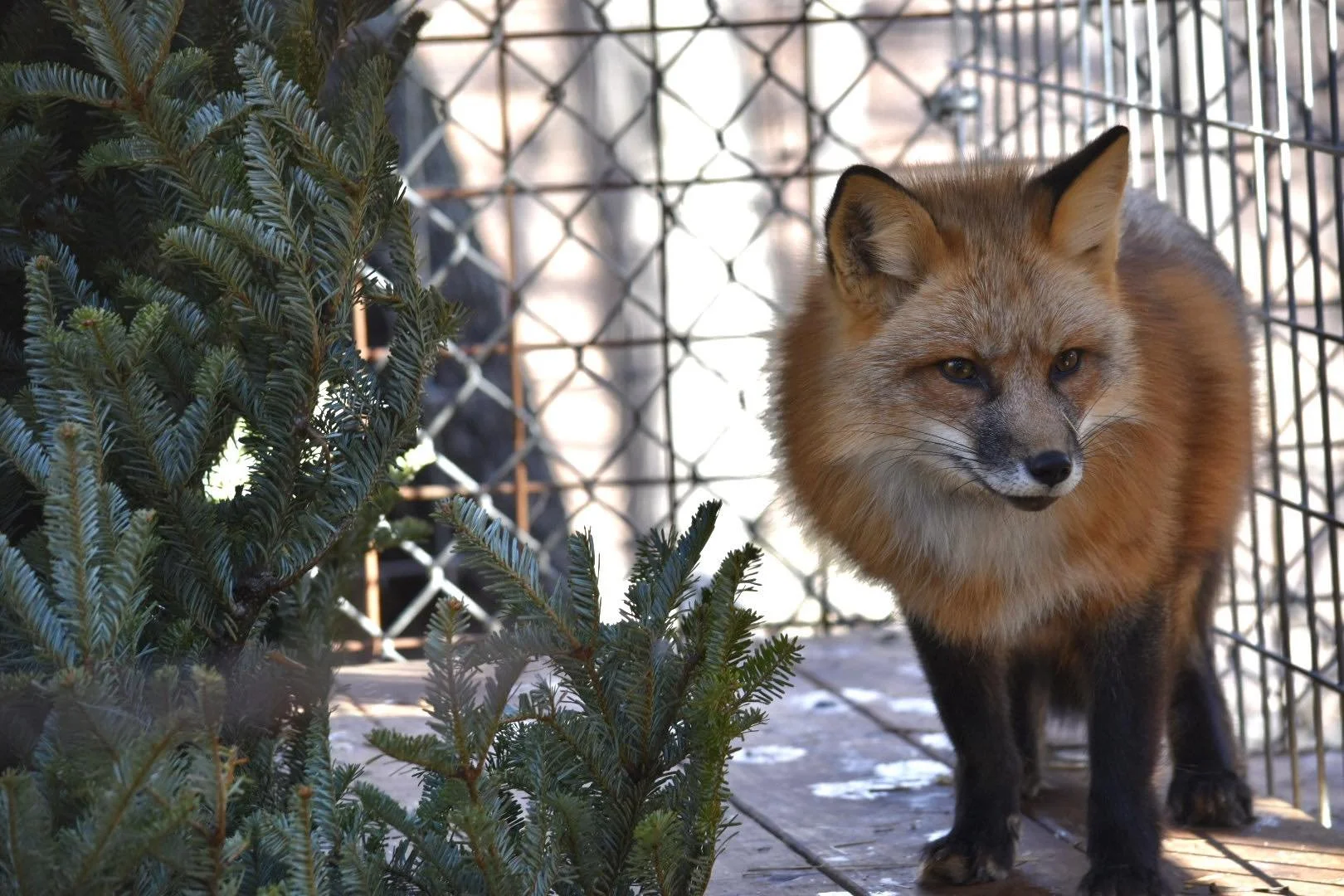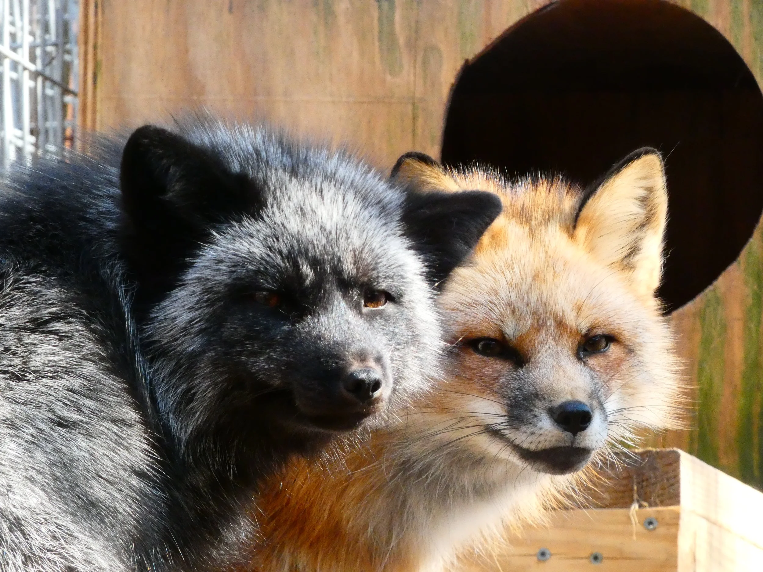Kitsune was rescued from a fur and urine farm in Ashtabula, Ohio in 2025. More information on this rescue can be found here. She lives in a group with three other foxes: Sen, Haku, and Telemachus. Her name comes from a supernatural fox in Japanese folklore.