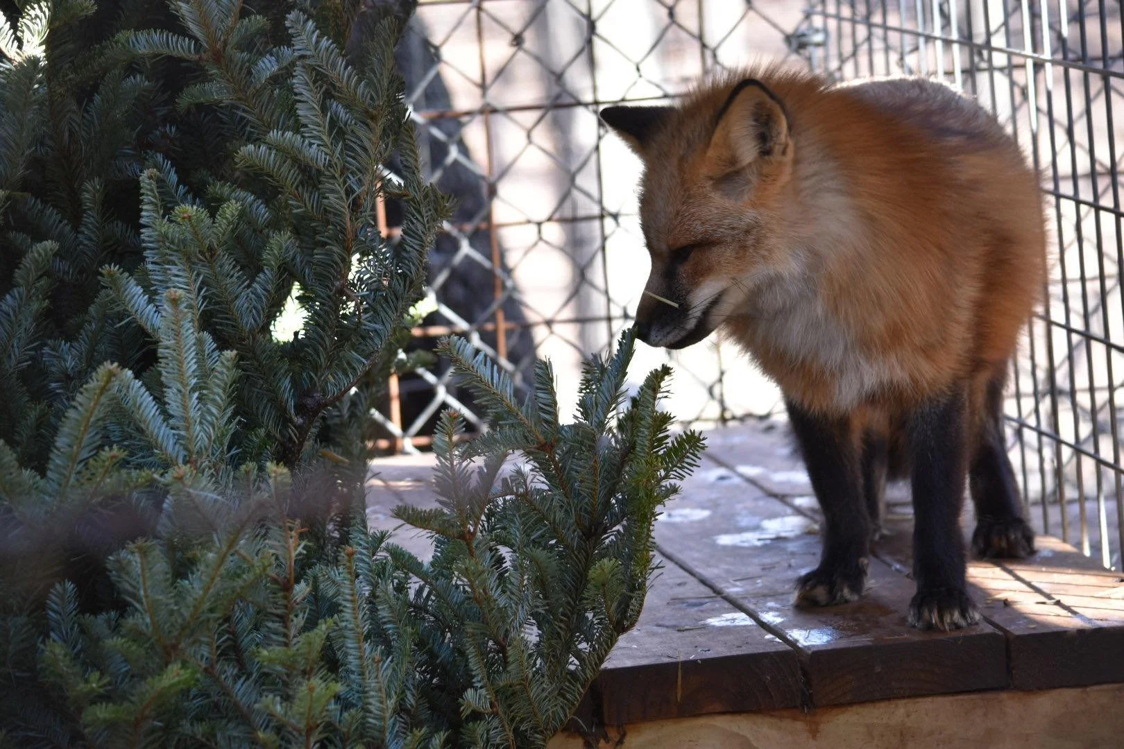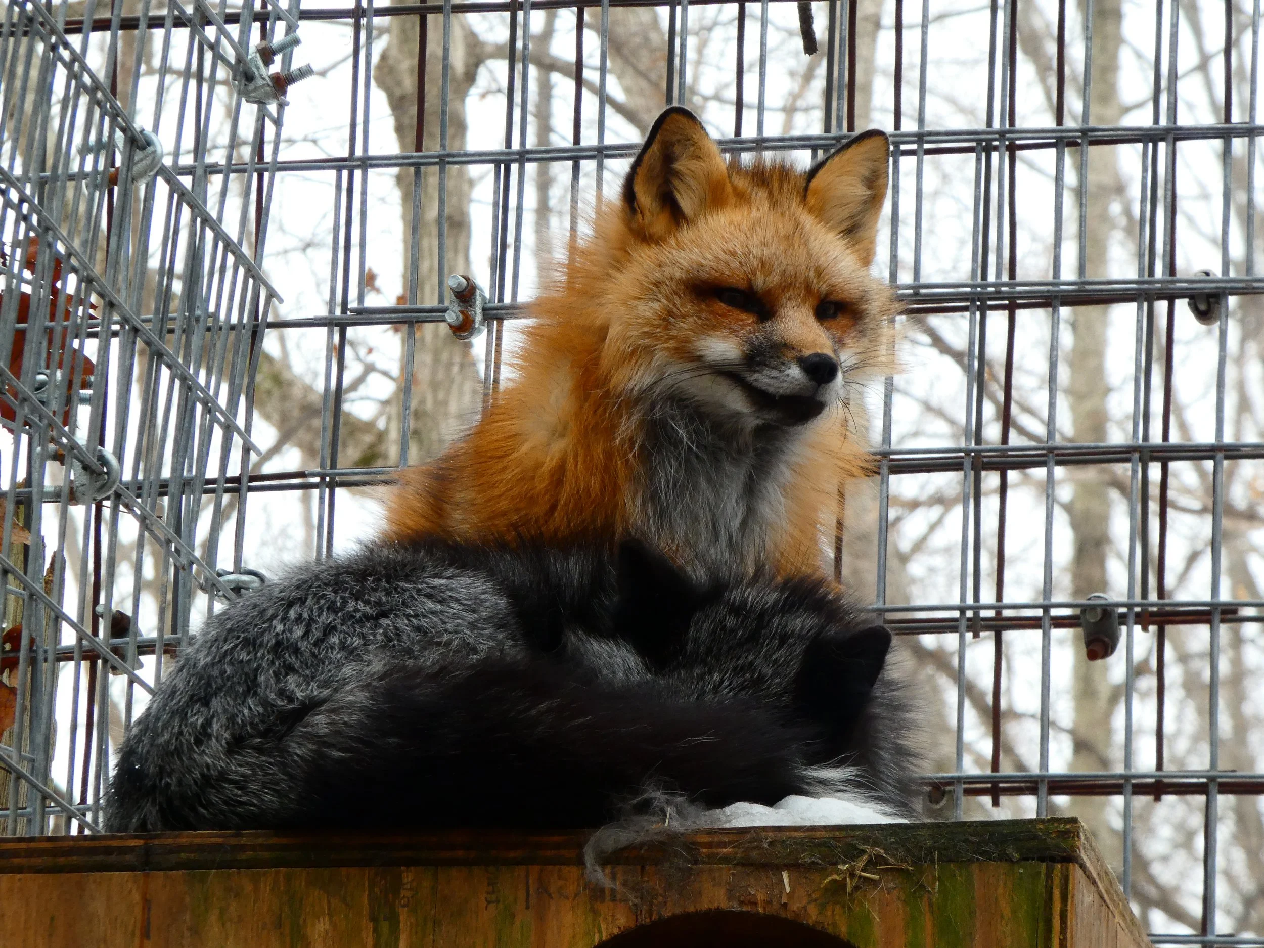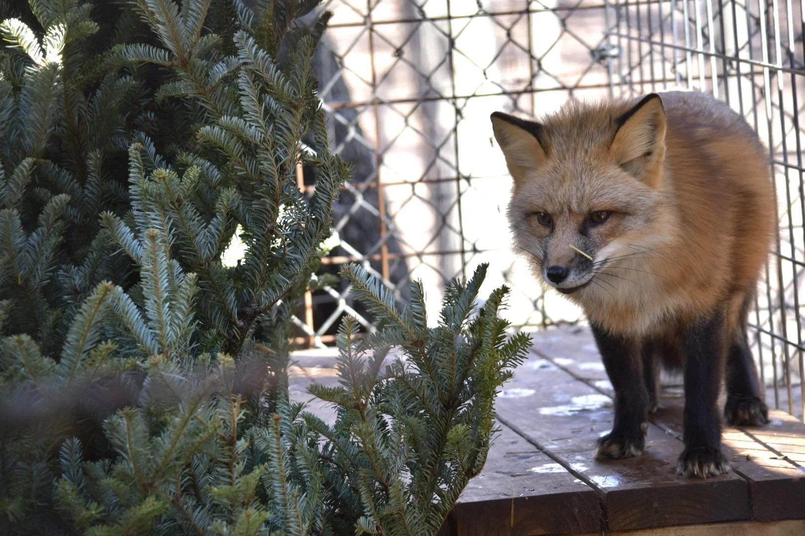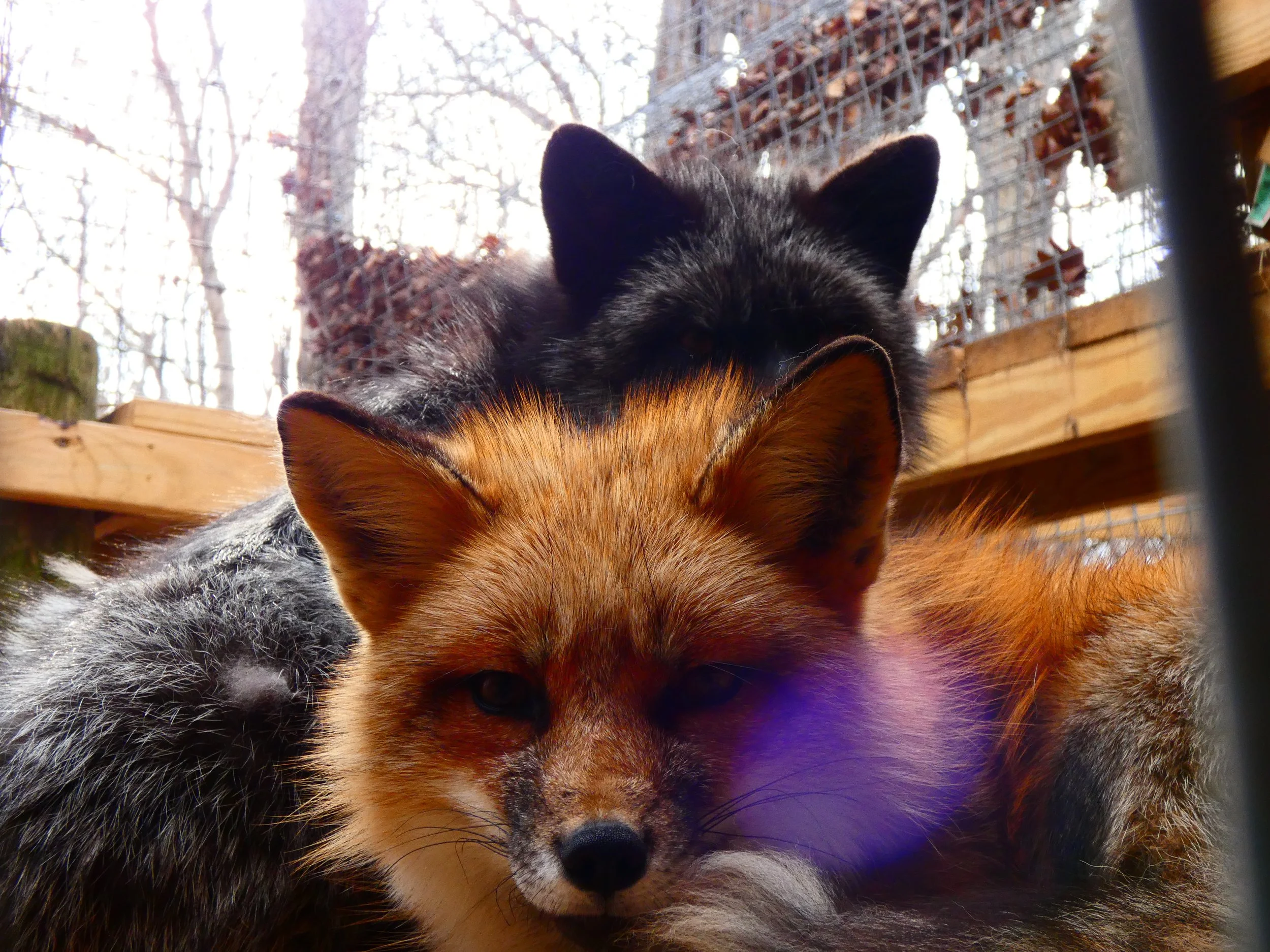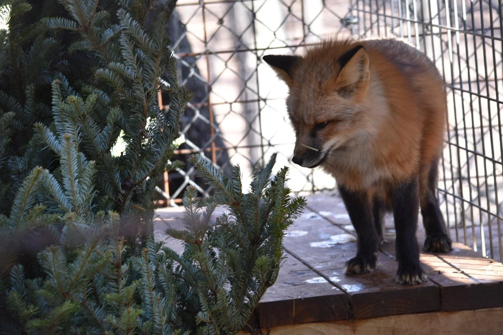 Kitsune was rescued from a fur and urine farm in Ashtabula, Ohio in 2025. More information on this rescue can be found here. She lives in a group with three other foxes: Sen, Haku, and Telemachus. Her name comes from a supernatural fox in Japanese folklore.