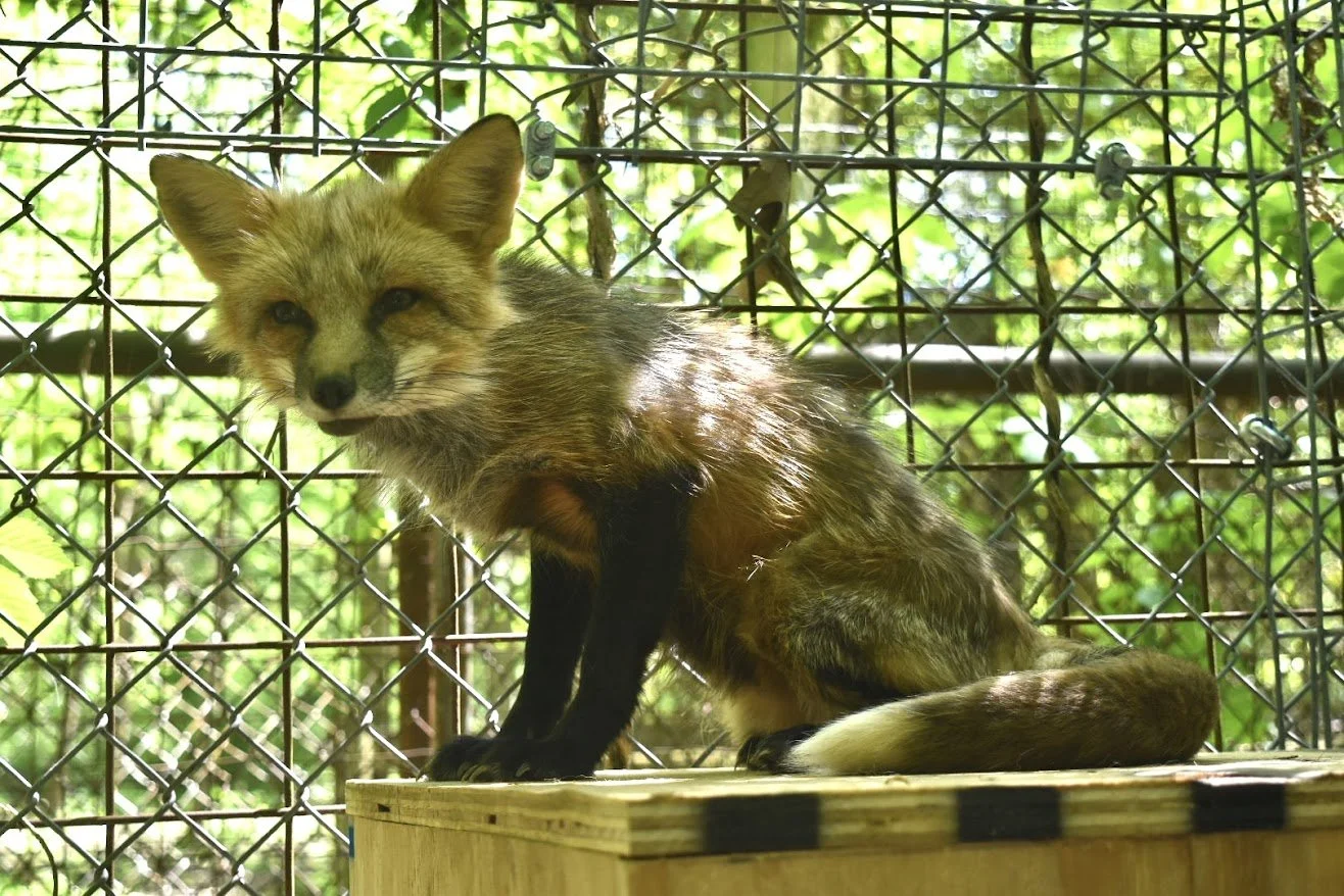 Sakura was rescued from a fur and urine farm in Ashtabula, Ohio. More information on this rescue can be found here. She lives in a group with four other foxes: Yuzu, Cooper, Zephyr, and Halo.