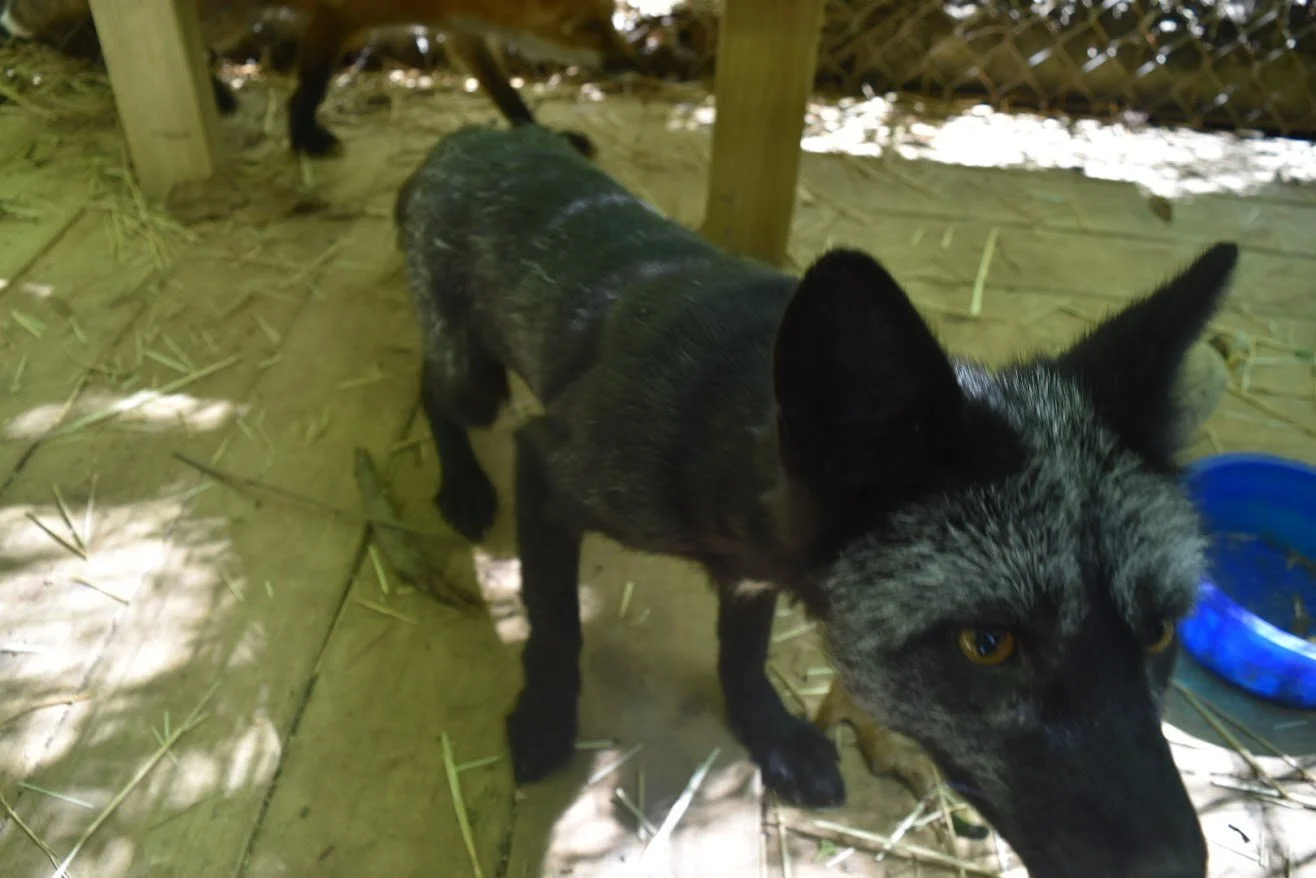 Zephyr was rescued from a fur and urine farm in Ashtabula, Ohio. More information on this rescue can be found here. He lives in a group with four other foxes: Sakura, Yuzu, Cooper, and Halo. He has a white patch of fur on his chest that helps him stand out.