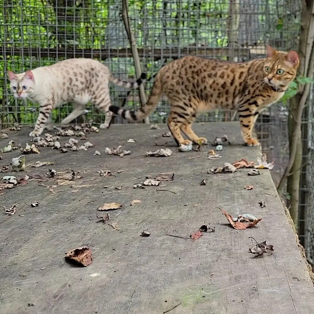 Laverne is one of two female Bengal cats that were surrendered August 27, 2021. The names of the females are named Laverne and Shirley. The name fits these girls perfectly as they are the best of friends with sweet, loving personalities. The woman who brought us these girls had rescued these two cats from a “very sketchy situation where they were abused and basically spent the first year and a half of their lives living on top of a refrigerator”. The rescuer did everything she could to try to help undo the trauma from their past, but after 5 months and the cats continuing to be too wild to handle (including urinating on her husband at night!) she decided to rehome them. After looking and talking to other rescues and shelters, it was hard for her to find one that took hybrids, was not at full capacity, and could guarantee the girls would never be separated. Luckily, she found the EFRC and the girls are already settling in great. Laverne was a little slower to warm up to her new wild life, but now she struts her stuff around her home and is making many new friends.