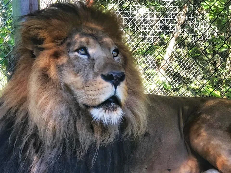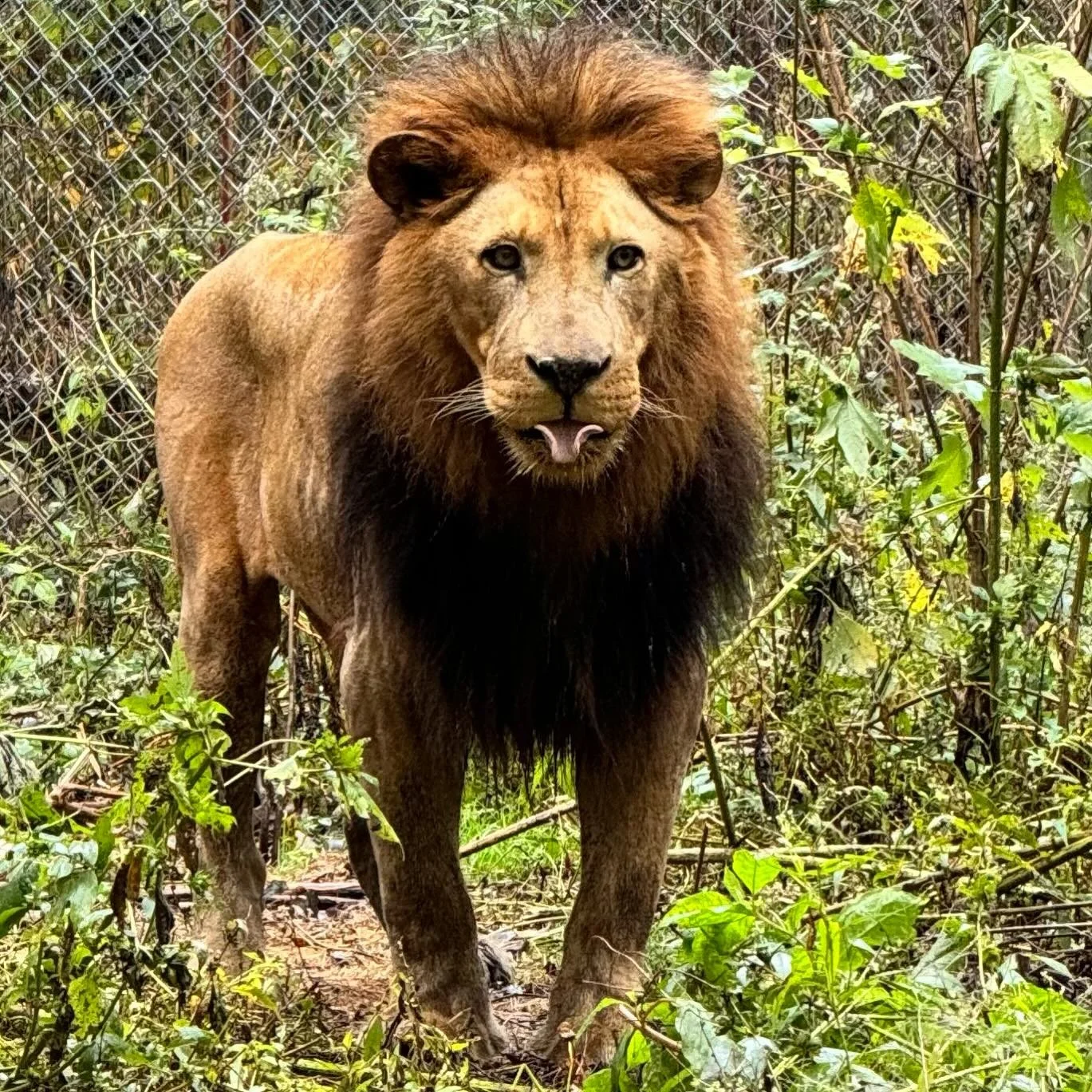 Bolero arrived in 2019 from a facility in California called Wildlife Waystation. Their Board of Directors had voted to surrender the facility’s California Department of Fish and Wildlife permit voluntarily and to close the facility. The facility had suffered through two wildfires and a flood. Overall, we rehomed 15 cats from Wildlife Waystation. Four pumas, six tigers, five lions were brought to the rescue center over two trips coordinated by the foundation Tigers in America and a fellow rescue, In-Sync Exotics out of Wylie, TX. Bolero is one of the sweetest male lions and loves to talk and show off for guests. He is very good at destroying Boomer balls and has come to love his different diet here at the rescue center.