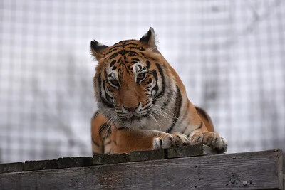 Barbie came from a roadside zoo in 2013 near Green Bay, Wisconsin. Barbie is a very cute cat, especially during feeding time. Barbie enjoys slowly stalking her food and pouncing at it at the last moment! Afterwards, she enjoys taking a nice bath with her food, often times leaving it in there for her keepers to find.