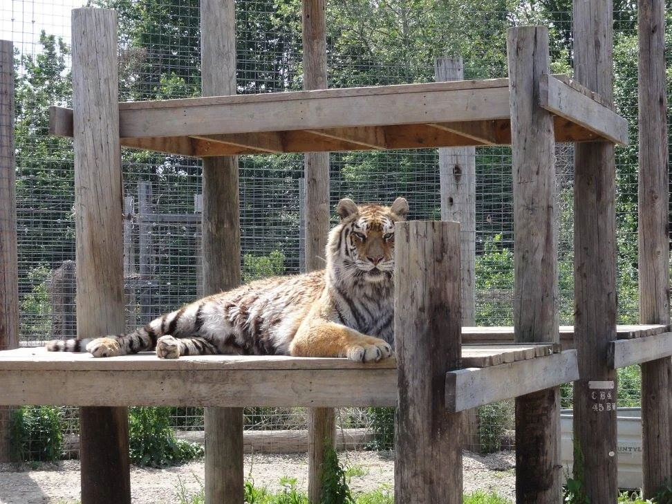 Shantel was rescued from a facility called JNK Call of the Wild, in New York in 2014 despite the fact that the facility lost it’s license years earlier. At her former facility, she didn’t have a large water tank always available to her, as she does here. Those that are familiar with tigers know that swimming and soaking in the water is one of their favorite things to do and for Shantel this is no different! She is a silly girl who also loves to crouch and playfully stalk her keepers along the fence-line.